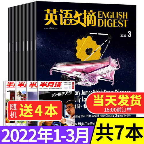英语文摘杂志2022年1/2/3月+2021年12月打包 中英文双语期刊 大学英语四六级考研英语辅导书 非2020年合订本。