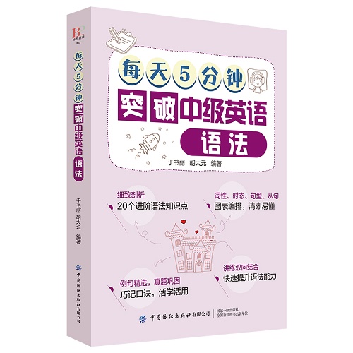 【现货正版】每天5分钟突破中级英语语法 于书丽 胡大元 中国纺织有限公司 具有一定英文基础的学习者学习书籍,20个语法知识点搞懂英文词法句法 9787518065837。