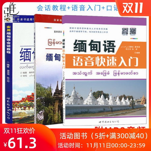 全3册 缅甸语语音快速入门+实用缅甸语口语教程+缅甸语会话教程